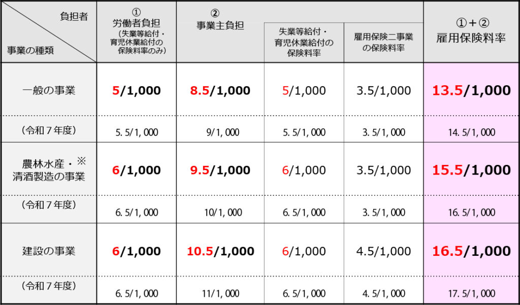 (枠内の下段は令和7年4月~令和8年3月の雇用保険料率)